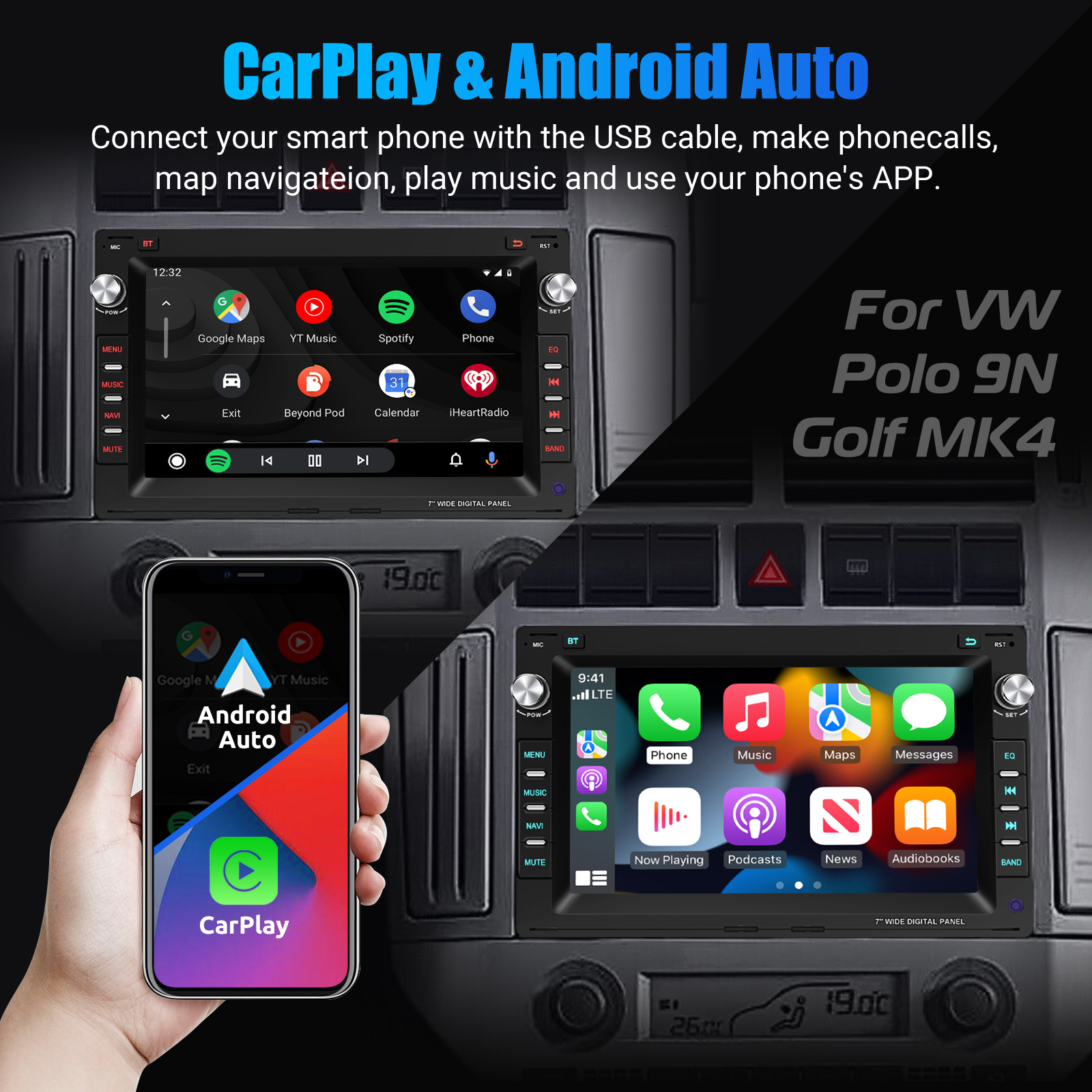 ESSGOO 7" Android 13 2+64G Wireless Apple Carplay Autoradio Für VW Polo 9N Golf 4 Passat B5 T5 GPS NAVI RDS Wifi Bluetooth FM EQ
