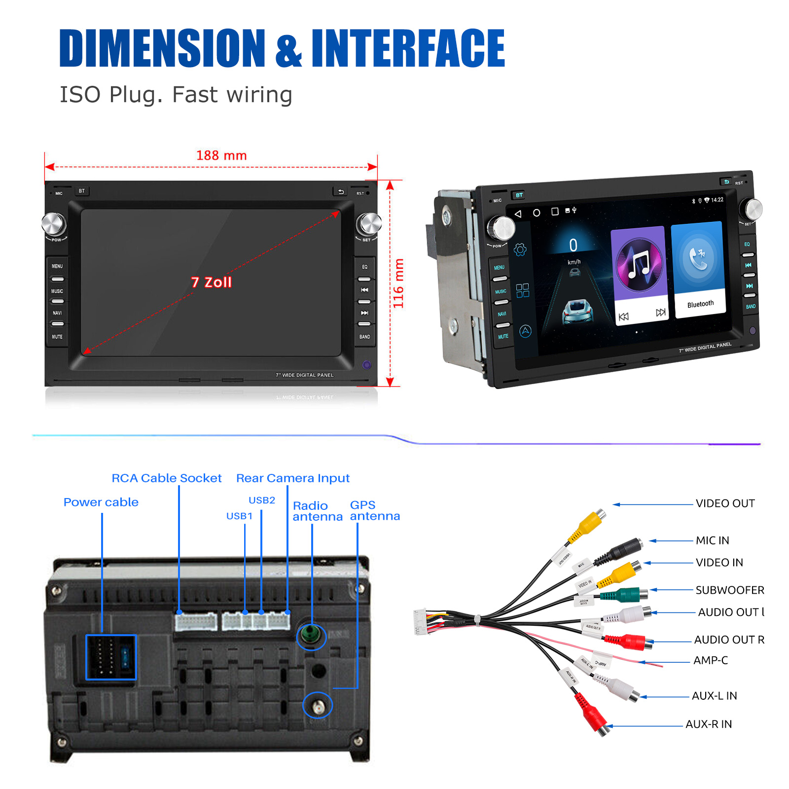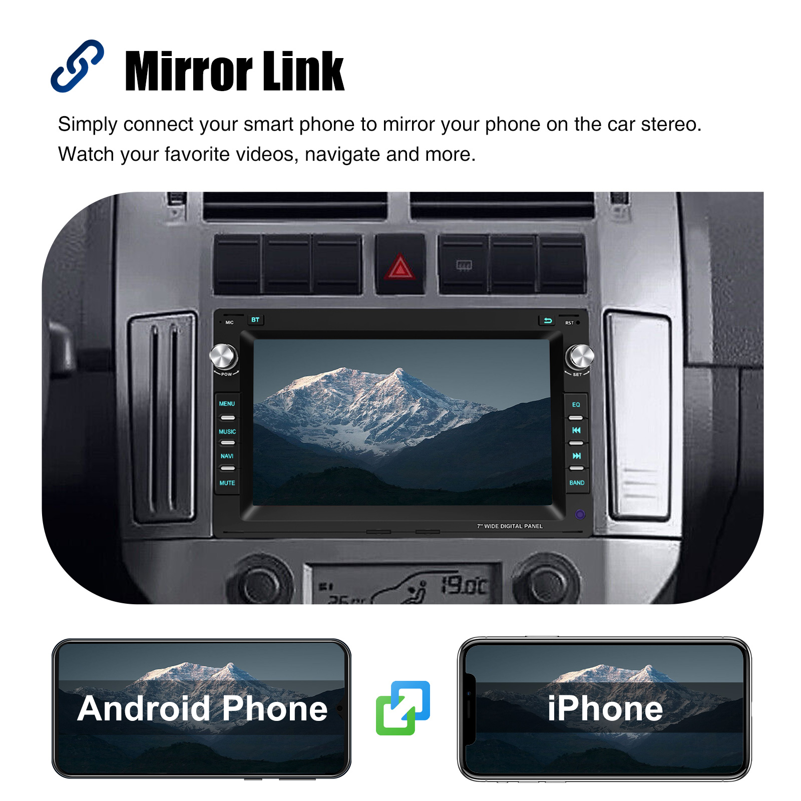Mirror Link & Carplay & Android Auto: With this car radio, you can experience the amazing Mirror Link function, compatible with iOS and Android phones. You can mirror your smartphone screen to the car radio using apps like Google Maps, Spotify, Youtube, etc. Replace your cell phone with the car screen and turn your vehicle into a smart platform. Immerse yourself in a seamless and user-friendly infotainment experience with Apple CarPlay & Android Auto. Connect your iPhone to Apple CarPlay or your Android smartphone to Android Auto and securely access calls, texts, navigation, music and more. With intuitive operation via the touchscreen or voice control, you have all functions at your fingertips while you remain safely at the wheel. Use your favorite apps and stay connected at all times while keeping your eyes on the road. Turn your vehicle into an extended hub for your mobile devices and experience a new dimension in infotainment.
